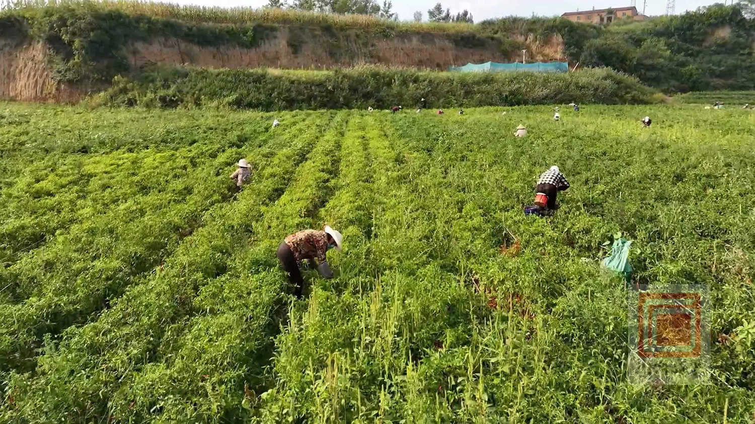 南河村村民赵秋香说:“ 现在辣椒进入收获期,我们每天都来基地收获辣椒,采得多,挣得多,一天下来能收入70元。”