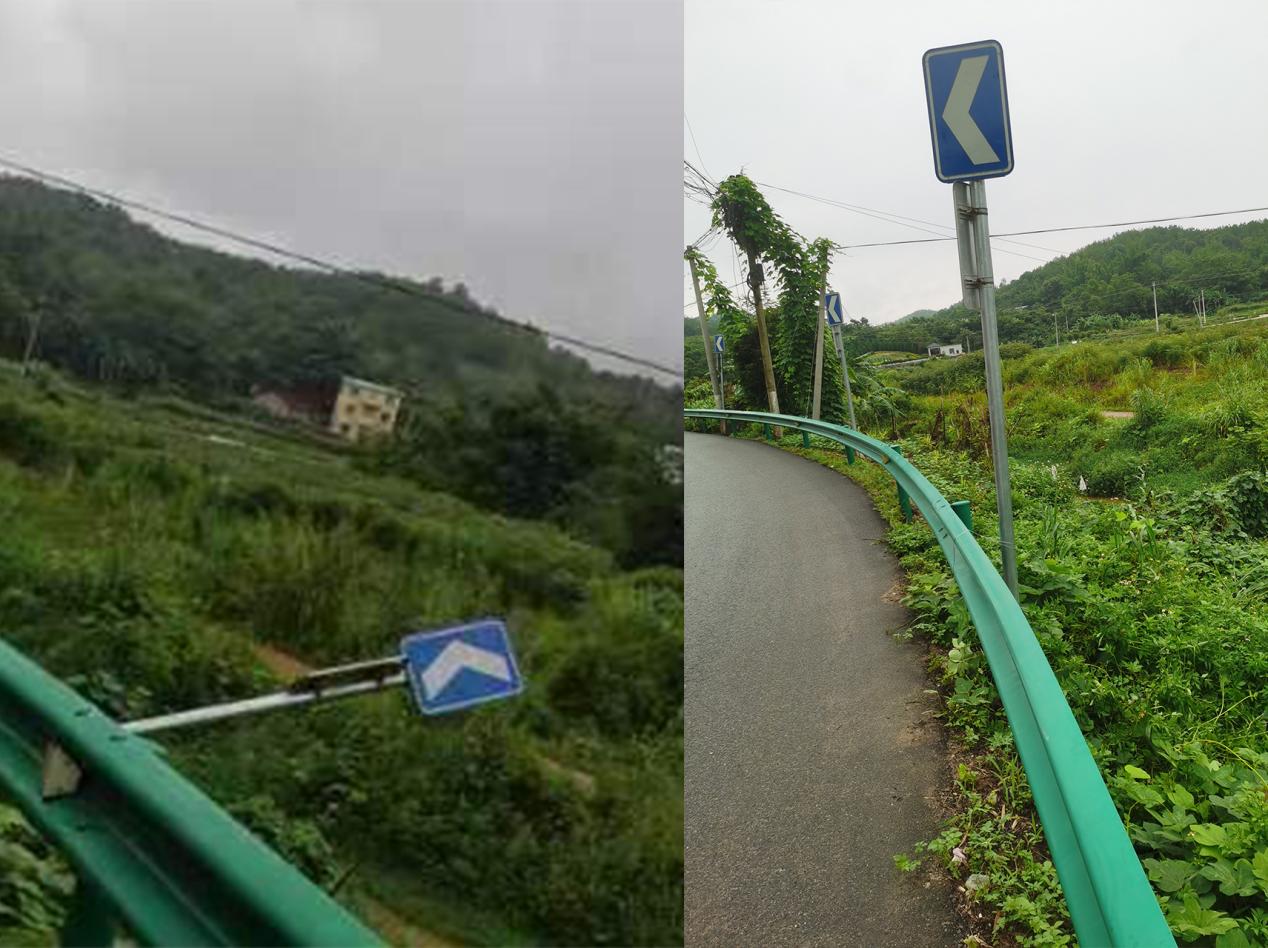 8月21日,养护人员对伏倒的指示牌进行扶正及加固,养护人员持续检查和维护,确保路段标志标牌清晰明确,为驾驶员和行人雨天出行提供准确的导向和提示,保障了公路安全通行。