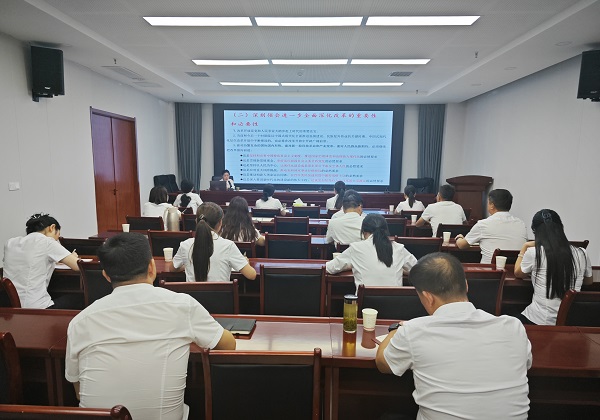 为深入学习宣传和全面贯彻落实党的二十届三中全会精神,8月22日晚,洋县绿色(有机)循环产业园区会议室内气氛热烈,一场深入学习党的二十届三中全会精神的宣讲活动正在进行。园区特别邀请了党校讲师为园区全体同志带来了一场精彩的宣讲。