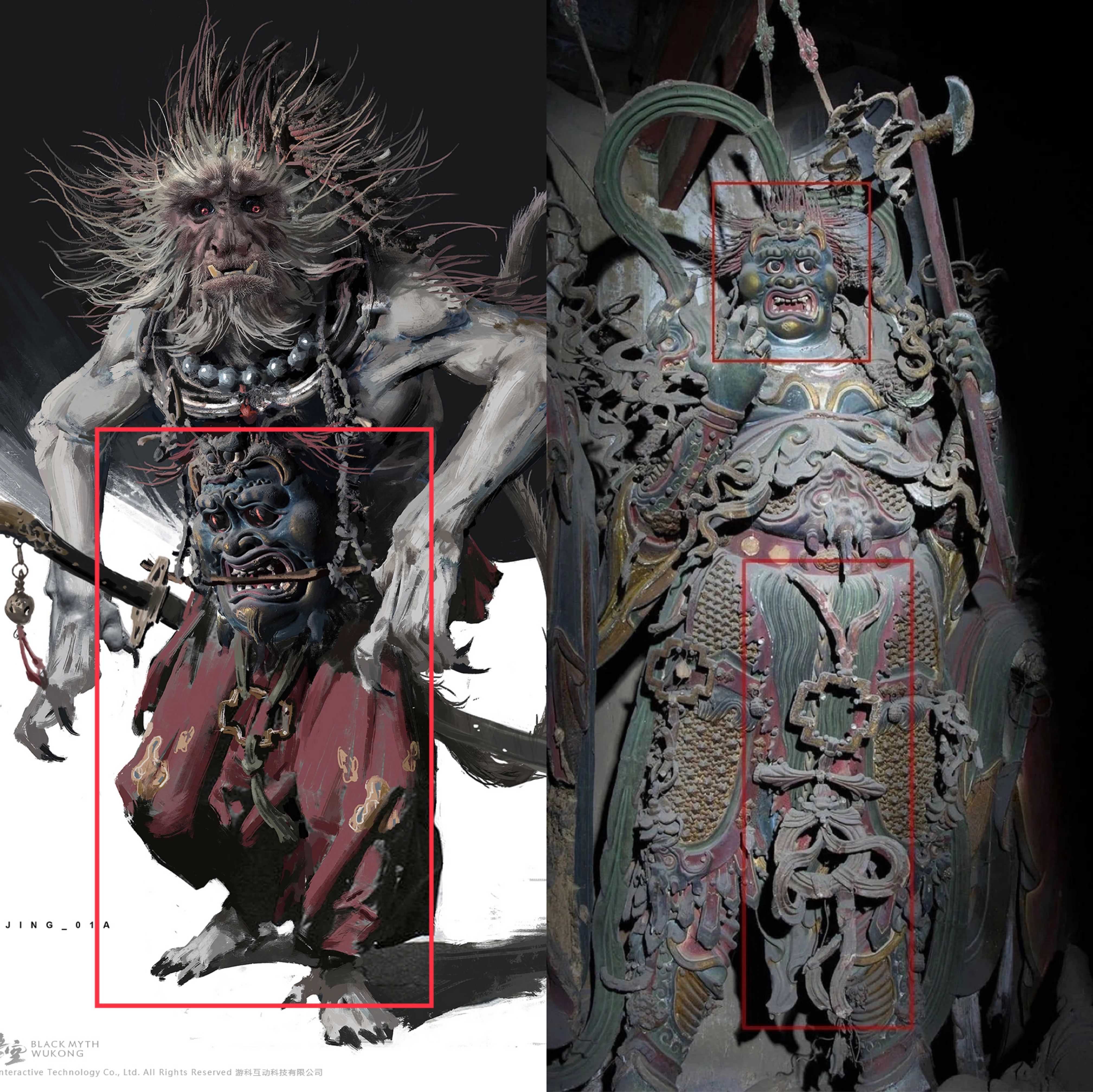 游戏马猴精(左),铁佛寺散脂大将(右)