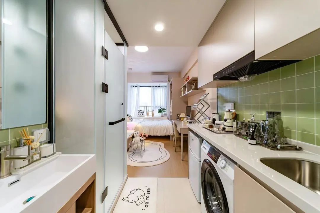 在环球港上班的王先生入住不到一个月,他表示,选择租住这里不仅因为靠近轨交13号线金运路站、交通便捷,较高的内装品质也是吸引他的主要因素,“装修风格、家具、电器的品质都很有档次。无论是套内装修,还是公共配套,都很符合我的预期。”