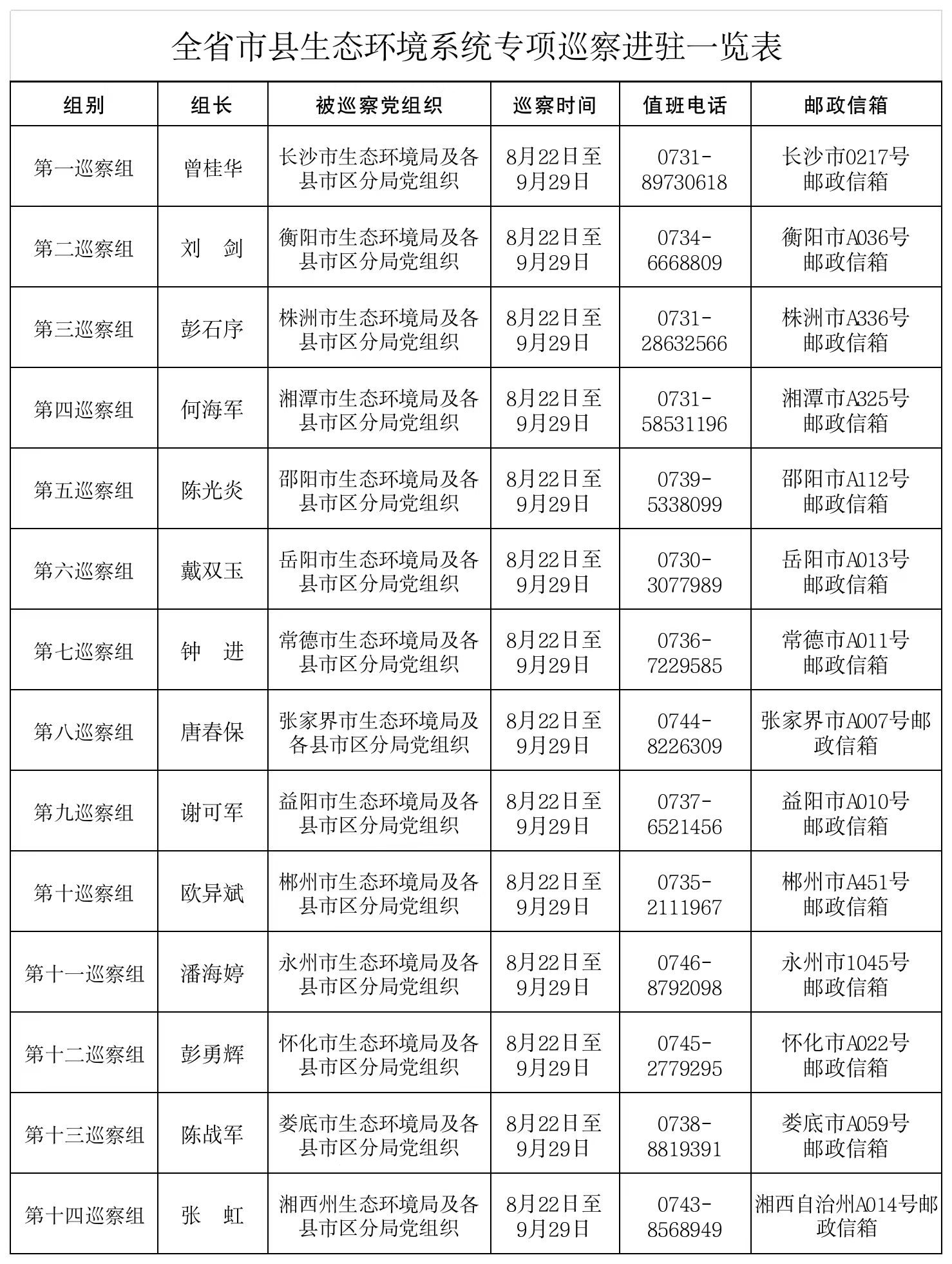 8月22日,省生态环境厅党组14个巡察组完成对全省各市州生态环境局及县市区分局党组的进驻工作,全省市县生态环境系统专项巡察全面展开。