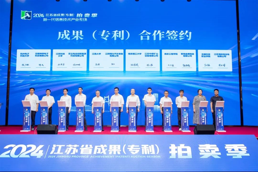 8月21日,由江苏省科学技术厅、中共江苏省委人才工作领导小组办公室、江苏省教育厅、江苏省知识产权局主办,江苏省科技资源统筹服务中心(江苏省技术产权交易市场)、江苏省高校科技发展中心、江苏省知识产权保护中心(江苏省专利信息服务中心)、无锡市科学技术局、江阴市人民政府等单位承办的2024年江苏省成果(专利)拍卖季新一代信息技术产业专场活动在江阴举办。