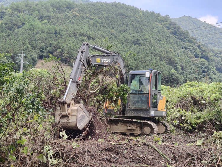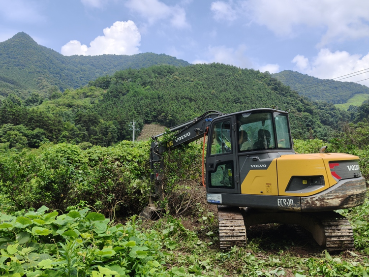 在拉沟乡木龙村的一处果园里,记者看到工人们正在操作挖掘机将患病的柑橘果树进行清理,并开展土地清理和平整工作,为接下来大豆、玉米等粮食作物的种植做好准备。