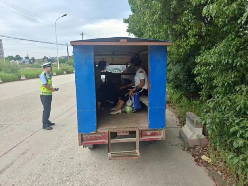 8月1日至今 鄂城大队共查处 三轮车违法载人违法行为8起 面对面宣传教育驾驶人、乘坐人40余人