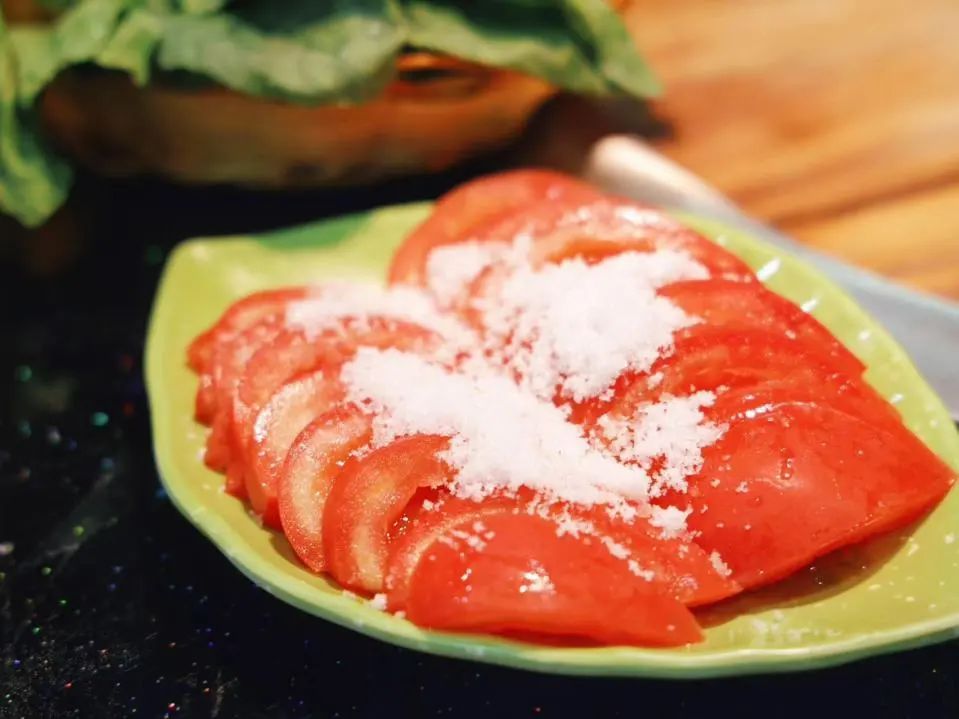 夏天凉菜的天花板,怎么少得了西红柿拌白糖。他们家的西红柿特别香甜,淌出来的汤汁配上绵白糖,不仅美味可口,而且营养丰富。酸甜的味道勾出了胃里怕热的小馋虫,让人忍不住食指大动。