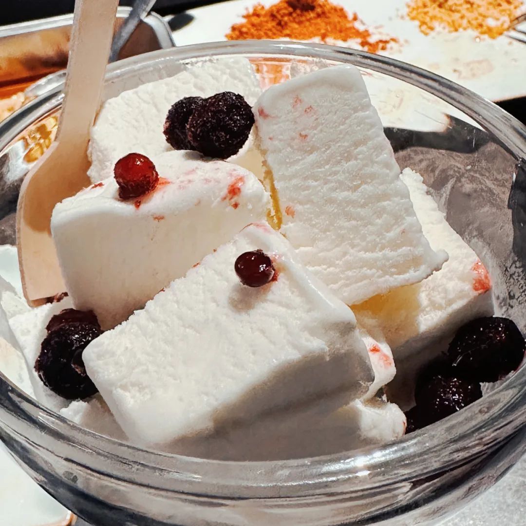 除了烧烤和主食,店里的甜品也色香味俱佳。口感细腻的冰激凌犹如凉风习习化在口中,瞬间便能赶走燥热,带来一片清凉。
