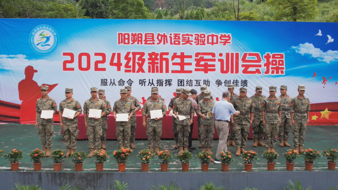 近日,阳朔县外语实验中学2024级新生军训会操暨表彰大会在该校田径场举行。县人武部、县教育局、县外语实验中学相关负责人,全体教官、班主任,2024级新生及家长代表参加大会。