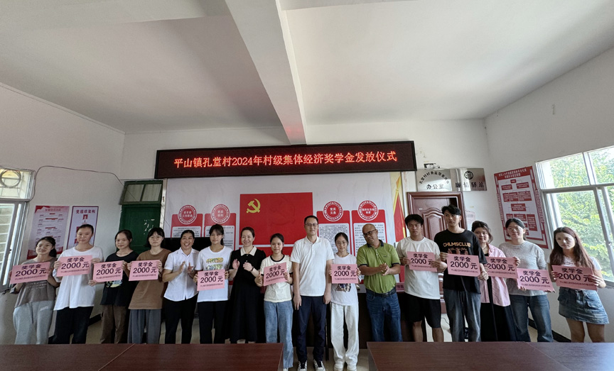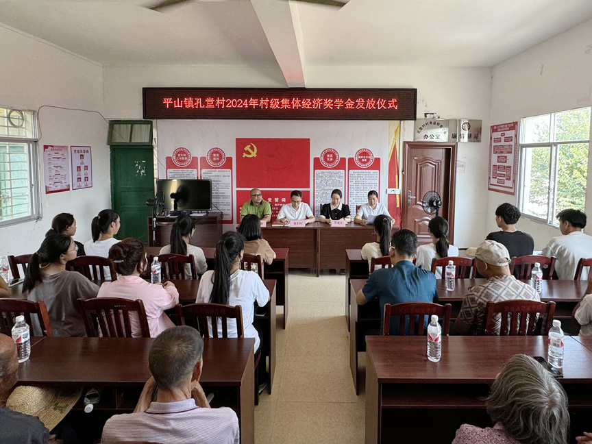 8月26日,平山镇孔堂村举行2024年孔堂村村级集体经济奖学金发放仪式,让村民共享村级集体经济发展“红利”,激励品学兼优的学子圆梦大学,让更多的优秀人才走出农村、建设农村、回报农村,为乡村振兴注入“源头活水”。