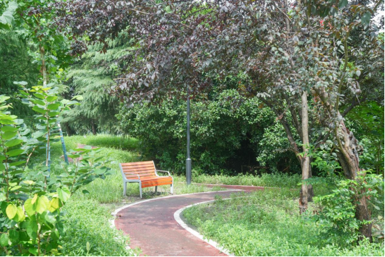 同时通过间伐、补植等抚育手段,调整林分树种,去劣留优,改善林木生长条件,提高林分质量,充分发挥森林休闲疗愈功能,打造集生态休闲、林下康养等多功能一体的开放休闲林地。通过改建步道,使整块林地达到“外部联通、内部完善”的效果,满足市民步行体验。在主园路沿线,通过坐凳、微景墙设计,点缀红枫等景观树种,打造静谧的林下休憩空间。