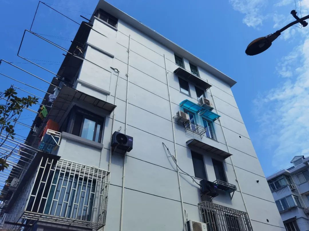 据介绍,整个小区共有7幢多层住宅,此次修缮总面积约为1.6万平方米。除了外立面外,修缮还对楼道内墙、楼梯扶手等进行了刷新,并更新了小区大门、屋顶和空调外机的排水管。此外,对于防盗门、路灯等影响小区安全的公共设施,在此次修缮中也一并进行了换新。