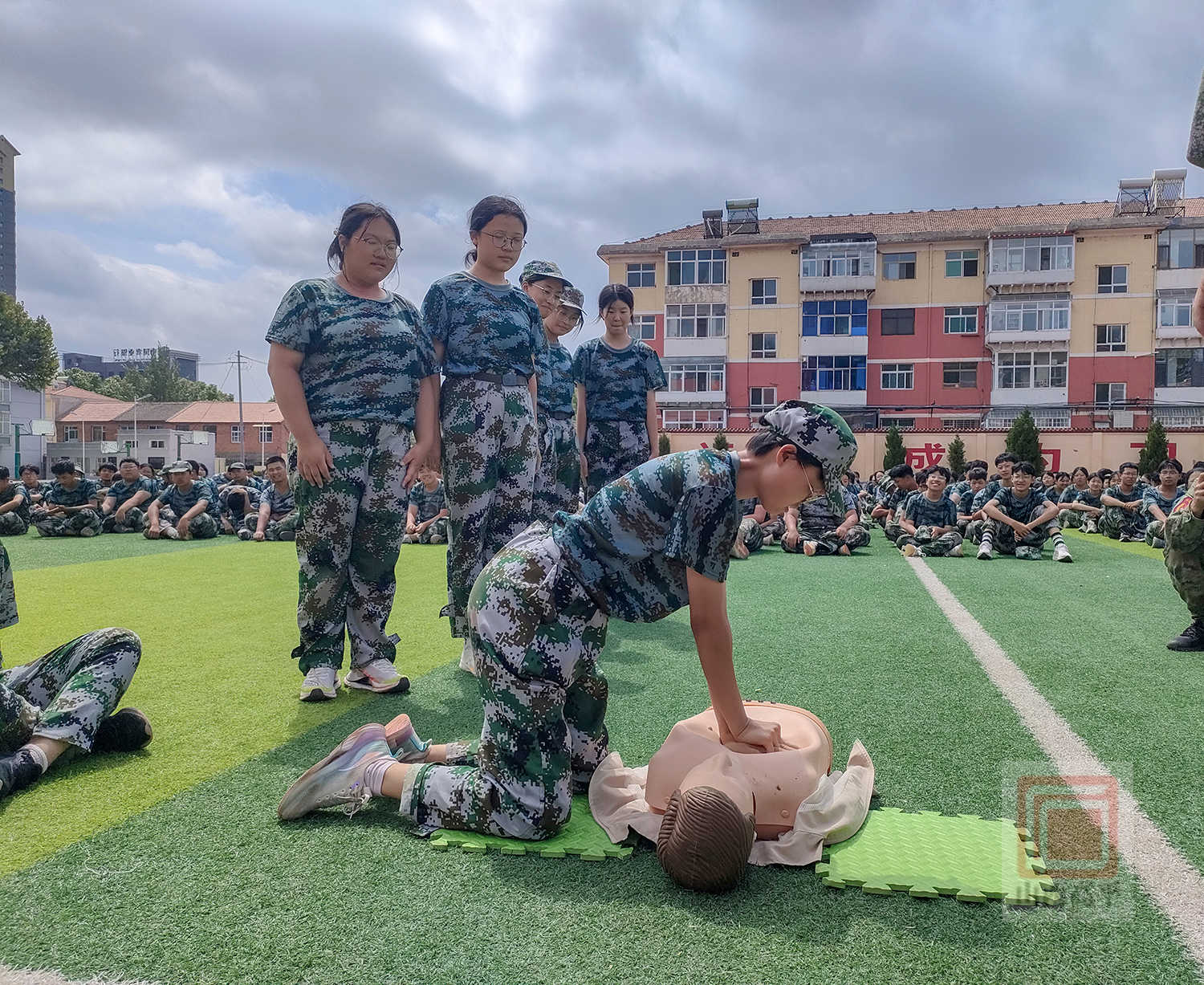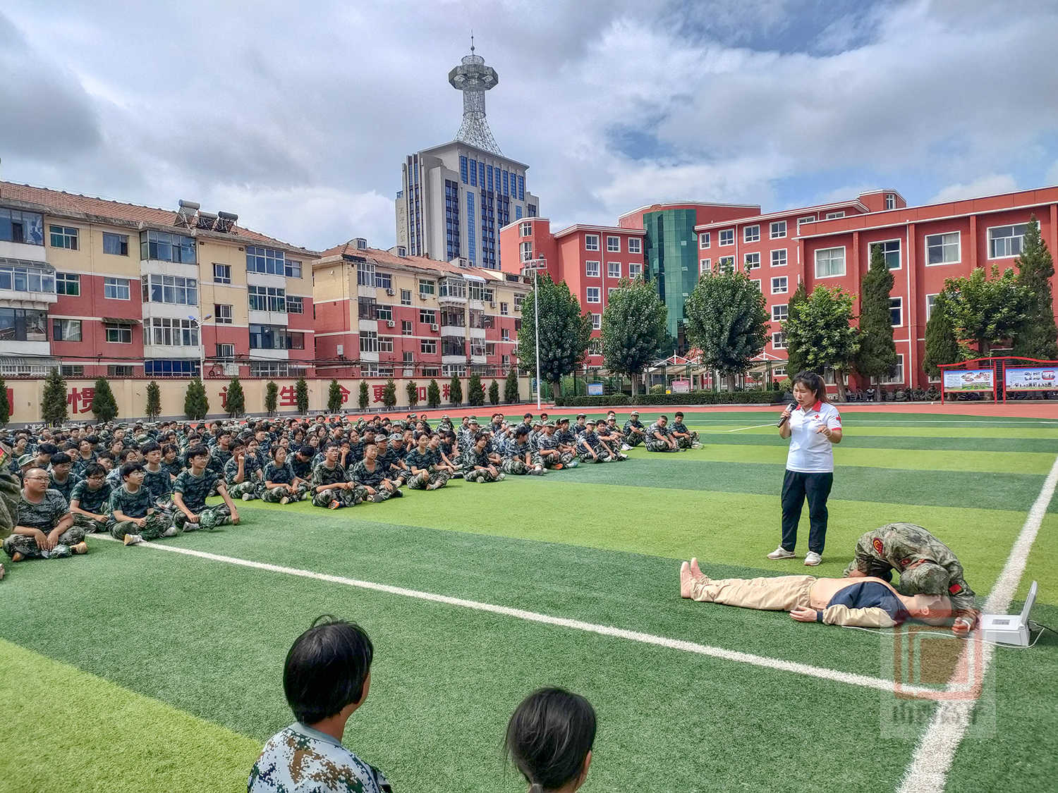 在高平二中,高一新生迎来了新学期,学生们身着迷彩服,正在进行军训。市红十字会救护讲师来到校园,为广大师生详细介绍了心肺复苏(CPR)、自动体外除颤器(AED)使用方法、气道异物梗阻施救及常见创伤包扎等应急救护技能,并借助人体模型进行实操演练,与师生们进行互动,让大家熟练掌握了应急救护技能。