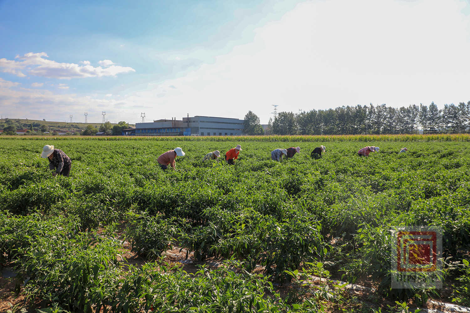 当下,正值辣椒成熟采收的季节。在马村镇东宅村的辣椒种植基地,200多亩辣椒迎来采收。村民们头戴草帽、分工协作,忙着采收、分拣、称重、搬运,乐享着丰收的喜悦。