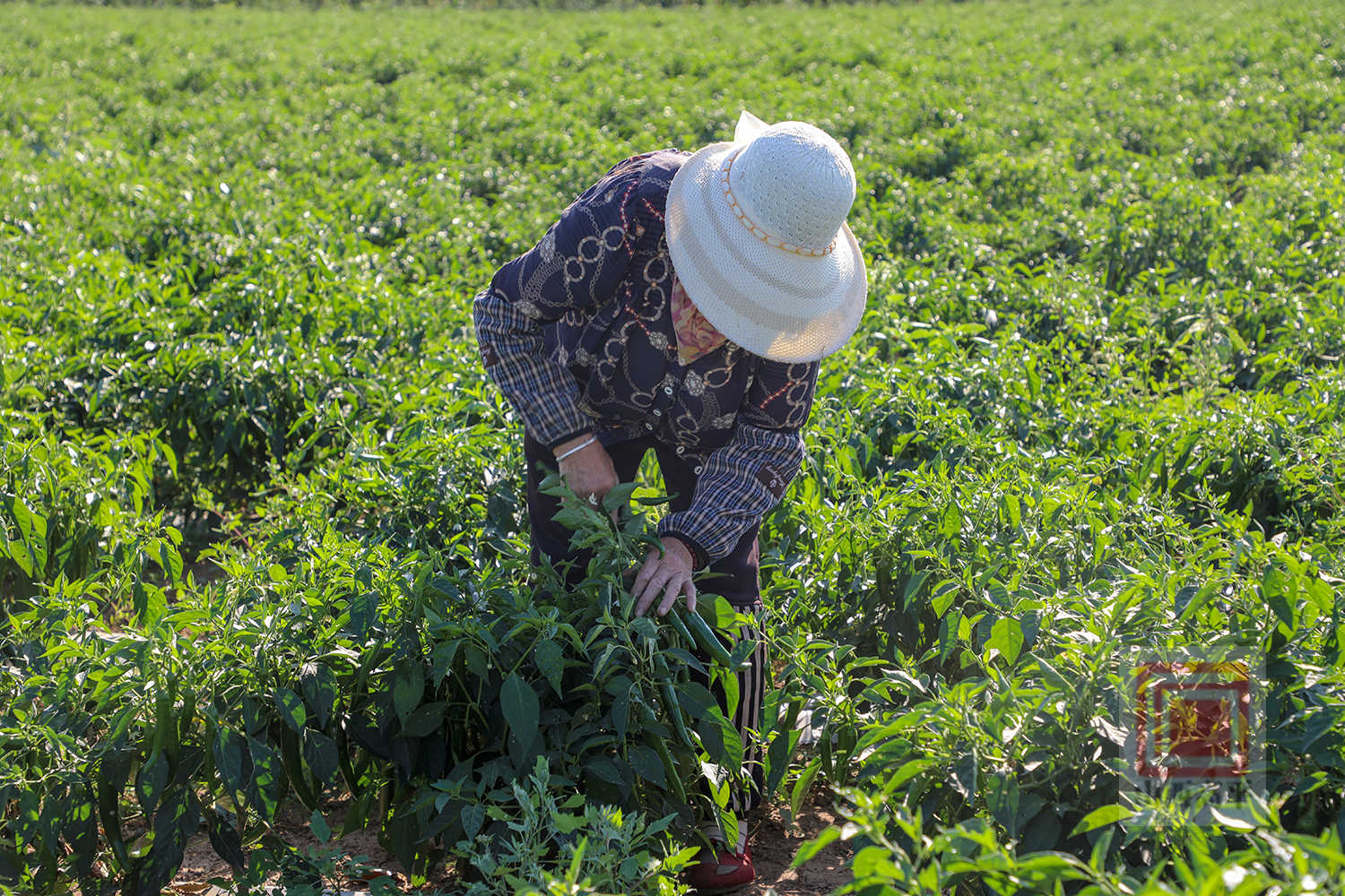 走进辣椒种植基地,一垄垄辣椒绿意盎然、长势喜人。色泽鲜艳、饱满丰盈的辣椒挂满了枝头,映照出村民们红火的日子。30多名村民则穿梭在辣椒丛中,手法娴熟地采摘辣椒,确保把新鲜的辣椒及时销售到市场上。