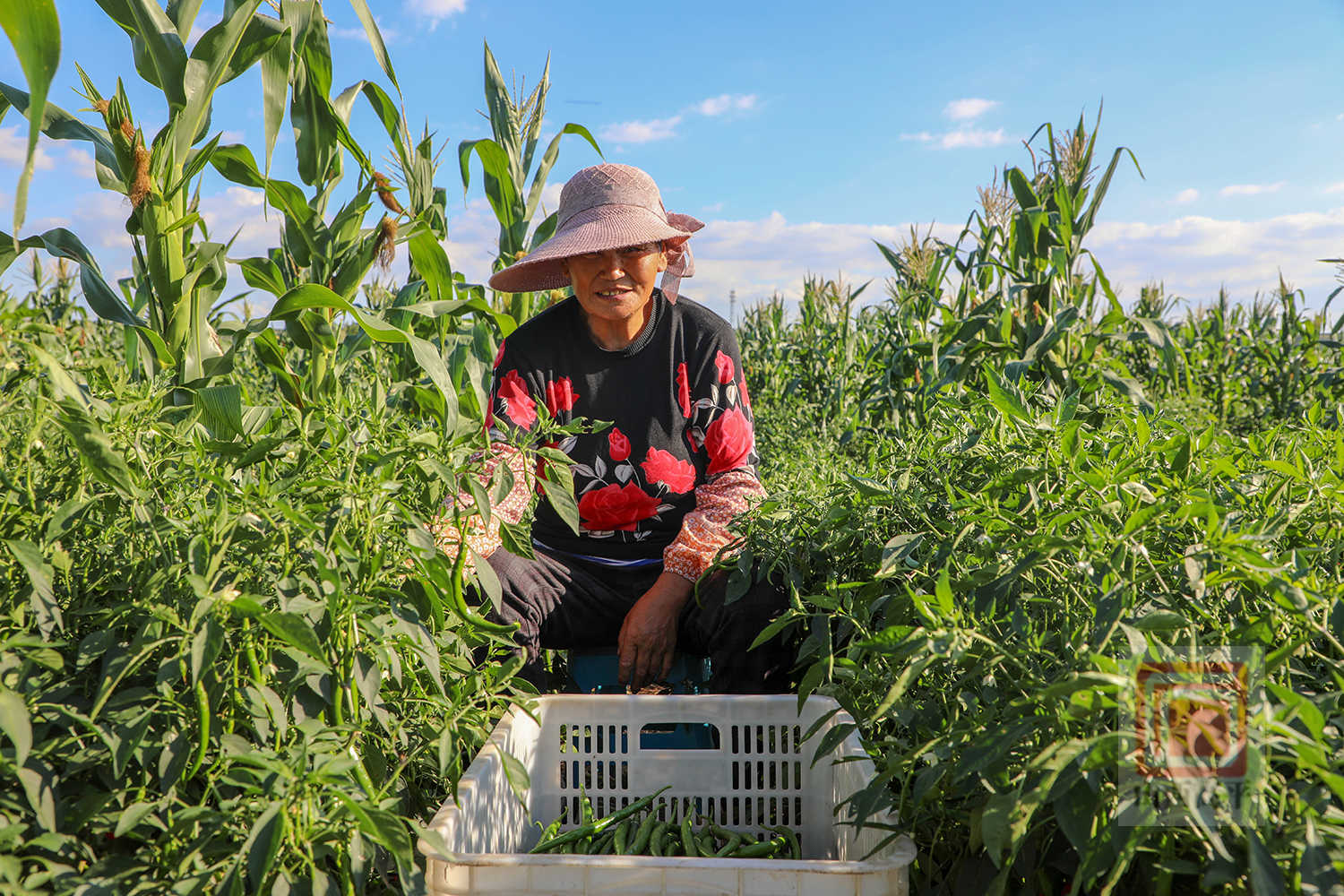 为大力推动辣椒产业发展,东宅村与山西省玺田农业现代化发展有限公司合作,采用“支部 + 公司 + 农户”的模式,流转了380亩土地。其中,种植美人椒、青皮辣椒、3号线椒、7号线椒、新世纪等辣椒品种共计200多亩,种植玉米100多亩。同时,为提高土地的综合产量,东宅村还在20亩土地上进行了辣椒与水果玉米的混合种植。不仅可以有效防止辣椒倒伏,还能提高辣椒的光泽度和品质,促进一地多收。
