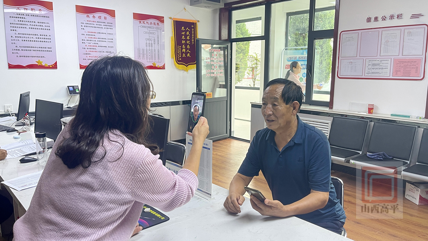 “大爷,看这里,慢慢摇摇头、眨眨眼,不着急,再张张嘴,好了,认证成功了。”在建宁乡郭庄村便民服务代办点,申好富在工作人员的帮助下,不一会工夫就完成了他在“民生山西”APP上的社会保险资格认证。