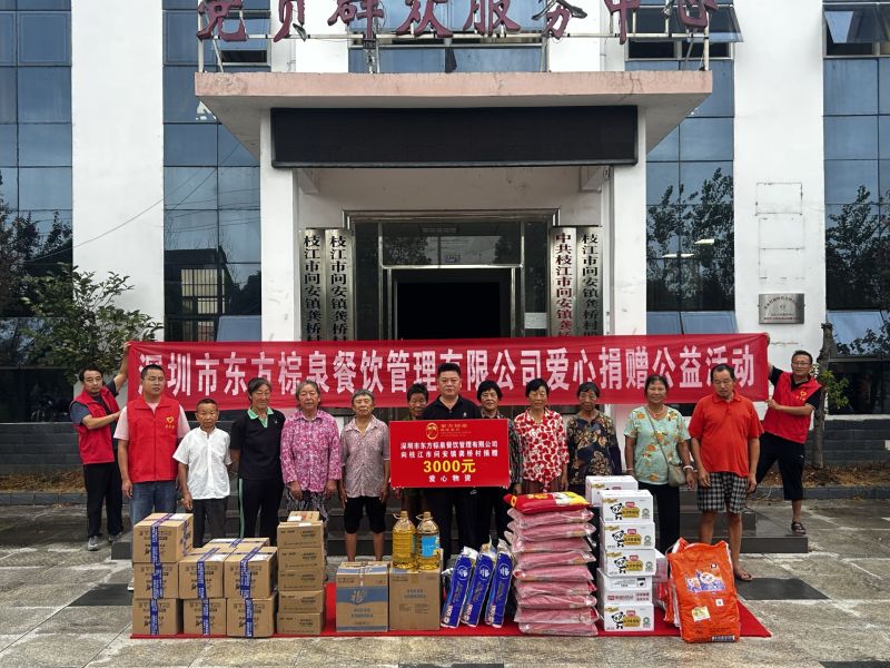 深圳市东方棕泉餐饮管理有限公司是龚桥村在外爱心企业家彭凤鸣创办的,他在专注发展餐饮事业的过程中,一直关注家乡事业的发展。6月份的捐赠活动中,该公司为村里的困难群众送去了80份生活帮扶物资。本次的捐赠活动中,该公司再次给村内10户低保户、重病患者送去价值3000元的生活急需物资。