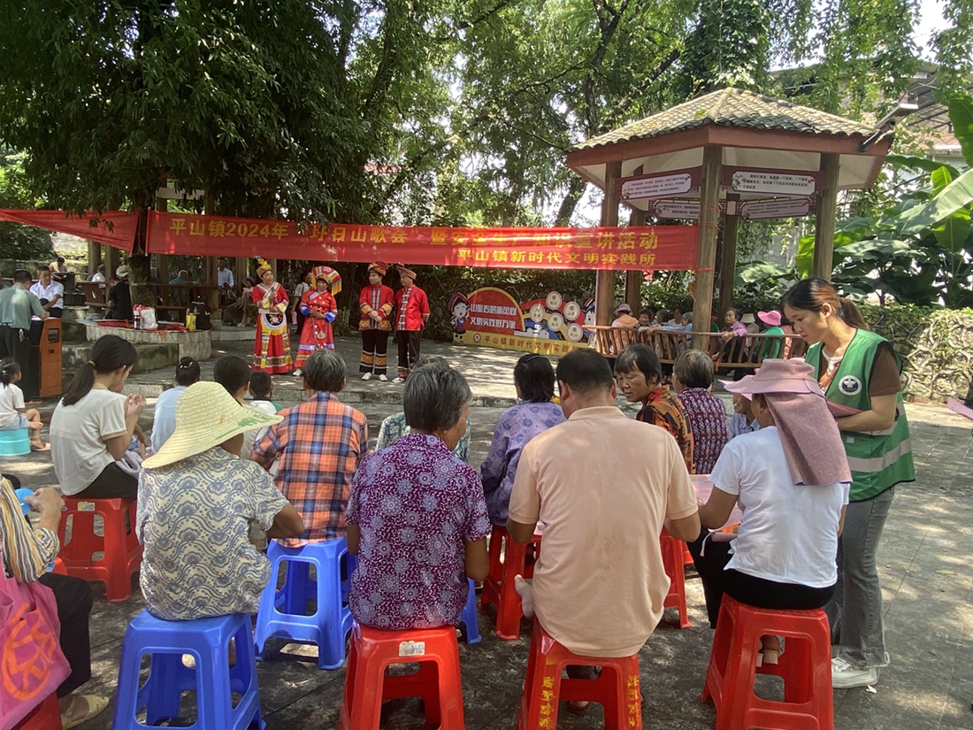 8月20日,平山镇综治办以“平山镇2024年“圩日山歌会”暨安全生产知识宣讲活动”为契机,在山歌广场开展反邪知识宣传教育活动。