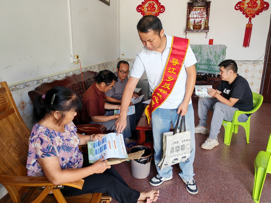 8月27日上午,导江乡的志愿者们利天气炎热群众在家的有利时机,深入温村村开展反邪教入户宣传活动。他们顶着烈日,走村串户,将反邪教宣传资料送到村民手中,耐心讲解邪教的危害,教育引导村民崇尚科学,远离邪教,鼓励村民及时举报邪教活动,主动配合反邪教工作。