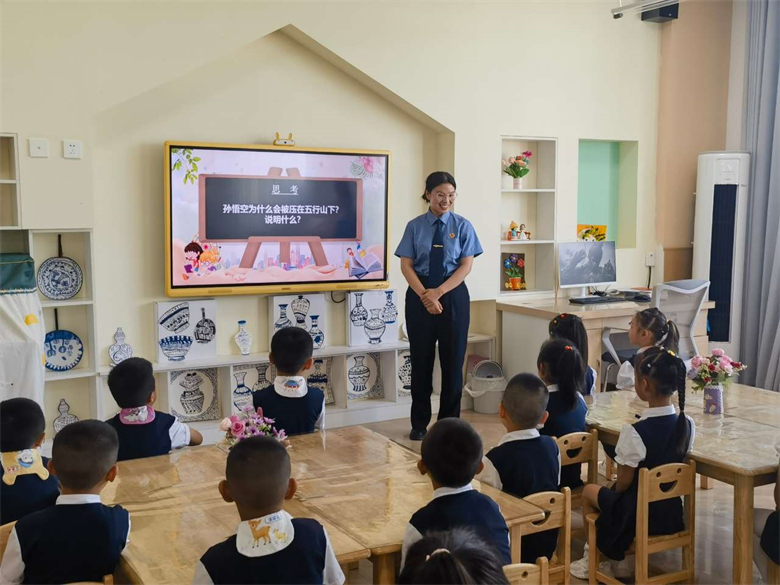 检察干警走进小朋友们的课堂,根据幼儿的认知水平和身心特点,结合典型案例和法律法规,用孩子们能理解的语言通过幽默的互动问答、观看图片等小孩子喜欢的方式,向他们讲解“什么是法”“如何预防不良习惯”“如何自我保护”等多方面内容,引导小朋友们从小树立“自我保护”的安全意识,在面对侵害时勇敢地说“不”。在孩子们心中播撒法的种子。