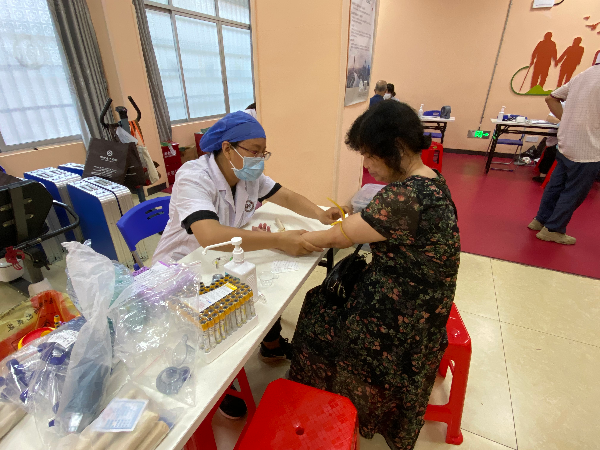 为保证体检活动的服务质量,社区工作人员提前通过微信、电话等联系方式,将体检的时间、地点和注意事项告知了社区的老年人。此次体检活动包含多项的检查项目,例如体格检查、血常规、尿常规、空腹血糖、血脂四项、肝功三项、肾功二项、心电图、腹部B超、和中医体质辨识等。活动现场,医护人员认真细致地为每一位老年人进行检查,并耐心询问他们的日常生活习惯和目前的身体状况,为老年人们提供专业的健康指导。