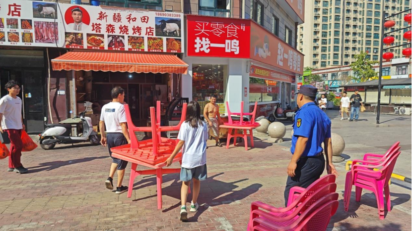 自行整改。执法人员坚持以增进民族团结为出发点,走进门店、及时沟通、精细管理、用心服务,了解少数民族民情民意,强调维护城区市容市貌工作的重要性,将民族团结工作细化到每一个环节,赢得了新疆少数民族经营户对城管工作的理解和支持,少数民族经营户积极行动,搬离公共停车泊位上的餐桌板凳等餐饮经营物品10余件,主动整改占道经营、店外经营等不良行为。