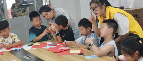 8月5日,柏华社区开展“扣好人生第一粒扣子”活动,聚焦剪纸艺术,让辖区青少年儿童发挥自己创造能力为祖国献上祝福。