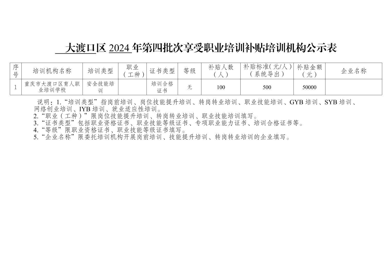 大渡口区2024年第四批次享受职业培训补贴培训机构公示