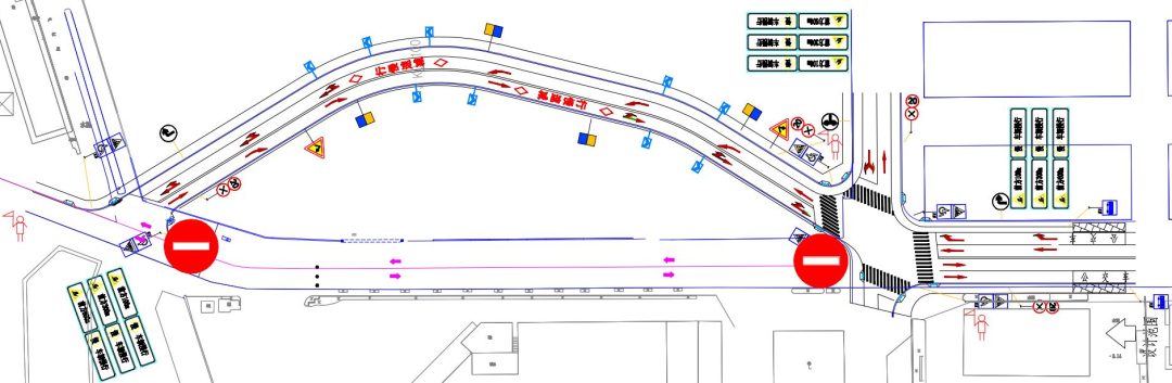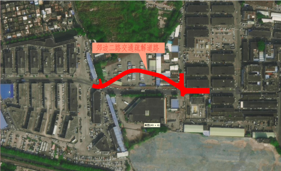 行人通行指引:改道后的郊边二路北侧有人行通道