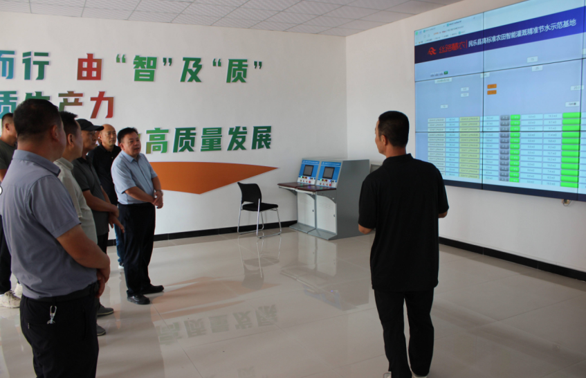 学习现场,大家认真听取水肥一体化智能灌溉系统的介绍,详细了解智能灌溉系统的工作原理以及取得的成效。现场演示了由“气象站、熵情站、首部管理站、灌溉集控站、精准配比智能施肥系统、电磁阀控制单元”构成的智慧化管理系统,实地参观讲解了每套设备的功能应用。同时现场探讨了水肥一体化智能灌溉系统实施区的节水成效、亩均成本、经济效益等方面的情况。