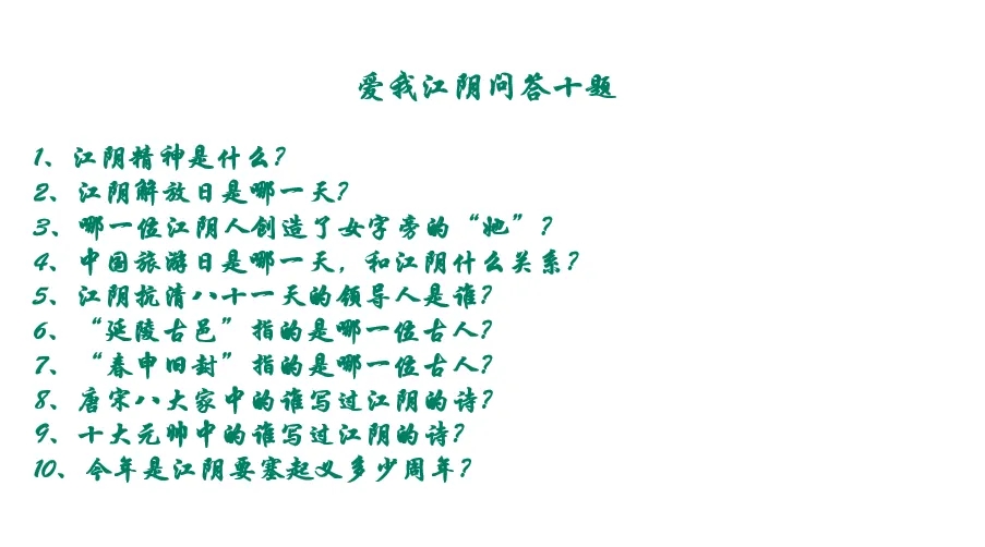 “今日我以江阴为荣,明日江阴以我为荣。”该部分着力培养大家的家乡荣誉感。