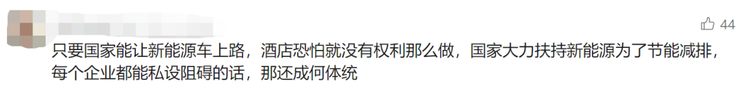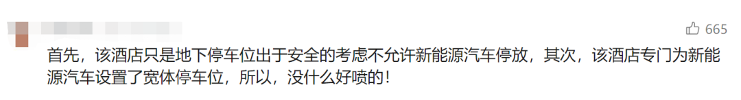也有网友支持酒店的做法,认为酒店还专门设置了新能车车位,没什么好质疑的。
