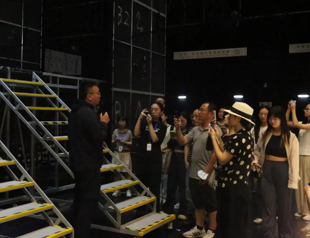 演出当天正值剧院每月一度的市民开放日,剧院特别策划舞台导览活动,邀请观众走入后台,以“解密”的角度出发,近距离了解舞台的服化、舞美、多媒体等元素。“我特别喜欢沈伟老师的作品,这次有机会看到幕后真是太幸运了!那个楼梯的设计,光是站在它面前就能感受到强烈的视觉冲击。”观众王欣说。