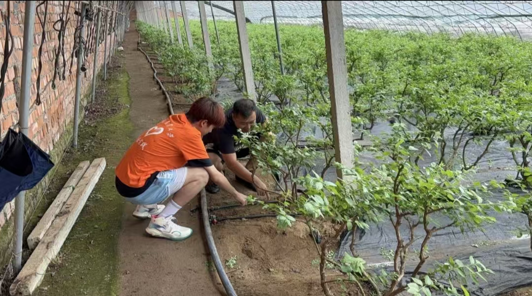 学生们还亲身来到大棚,学习了蓝莓和樱桃的种植技术。他们穿上工作服,背上喷雾器,戴上草帽,体验了种植户的日常工作。在与种植樱桃的村民的交流中,学生们学习到了实用的农业技能,并对农民的辛勤劳动表示了深深的敬意。