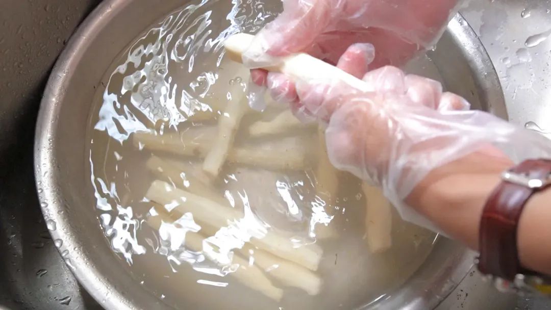 1.刮去山药表皮,将山药泡入水中、清洗干净