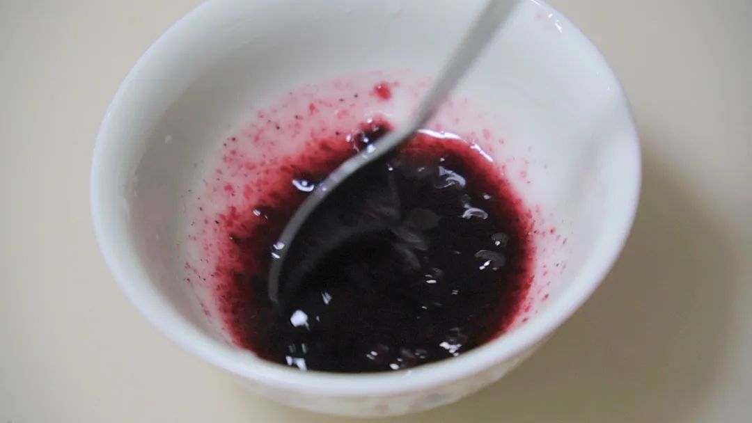 5.碗中倒入蓝莓酱,加入适量蜂蜜搅拌均匀
