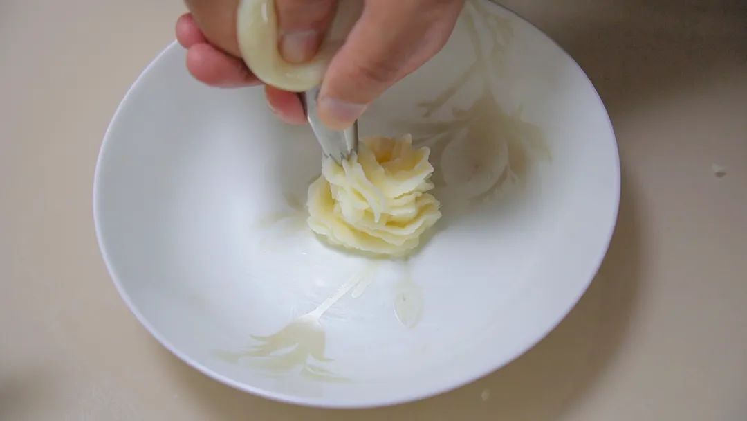6.将冷藏后的山药泥装入裱花袋,挤出自己喜欢的造型