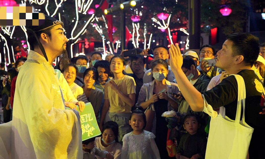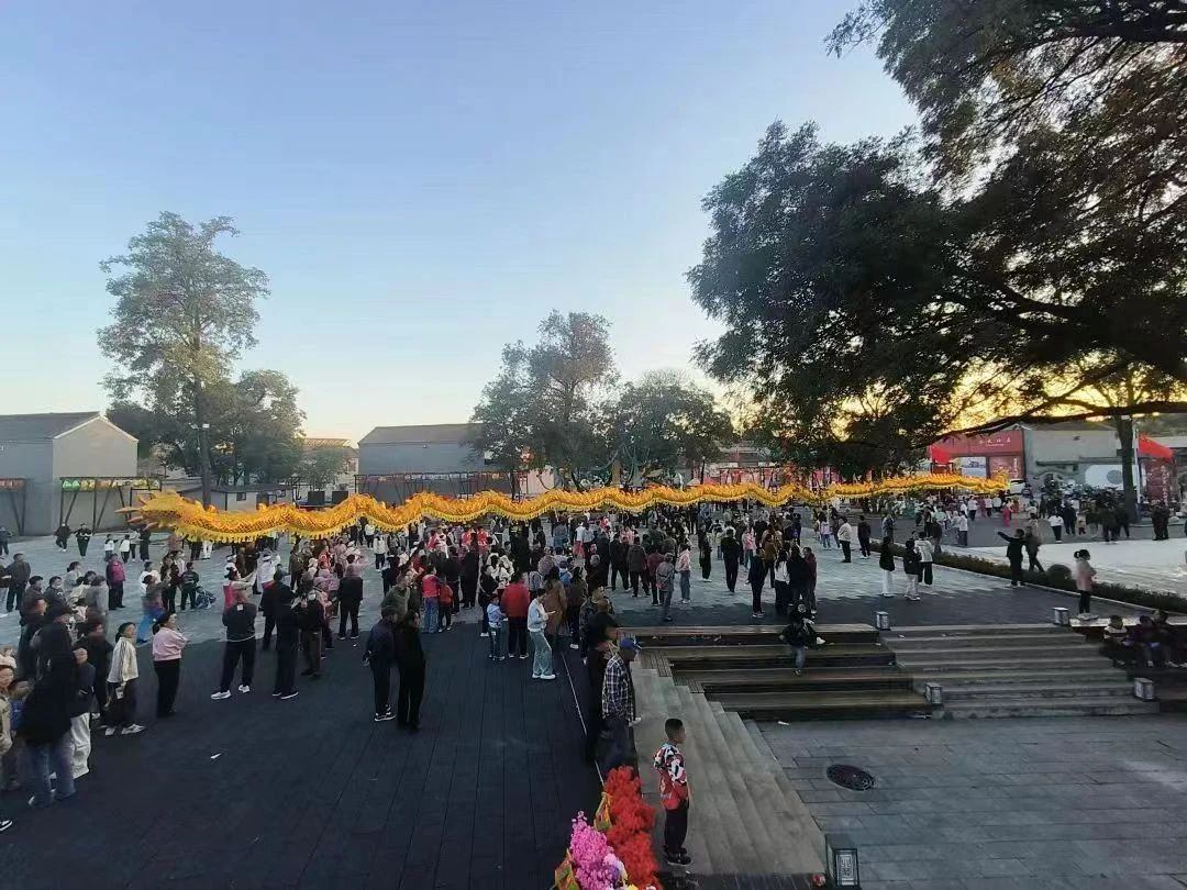 在古香中庙高频演出,日夜不停威风锣鼓、舞狮、踩高跷抬花轿情景互动、换装体验趣味游戏等3大系列13项活动热闹开演,现场人山人海、掌声如潮。