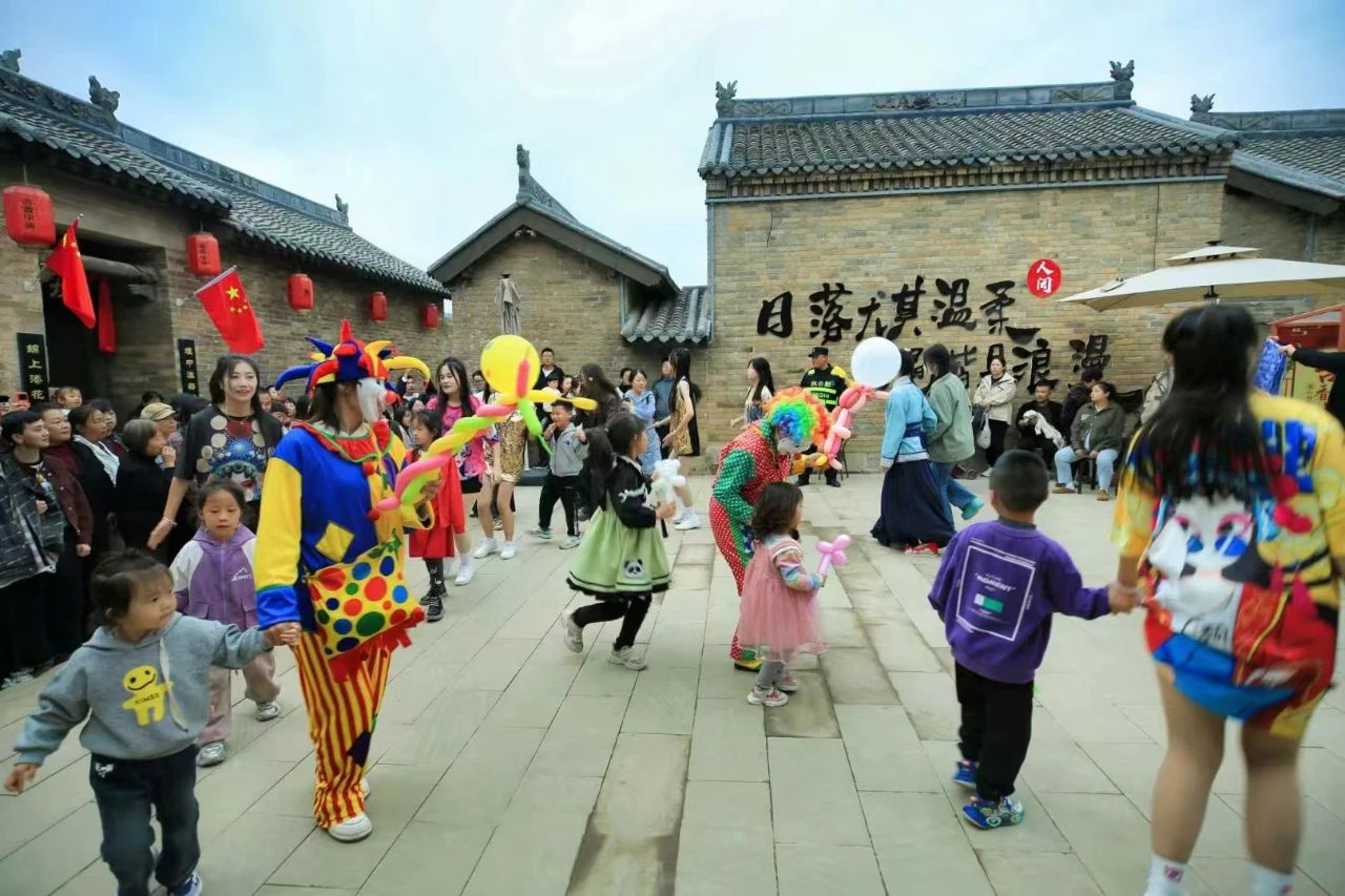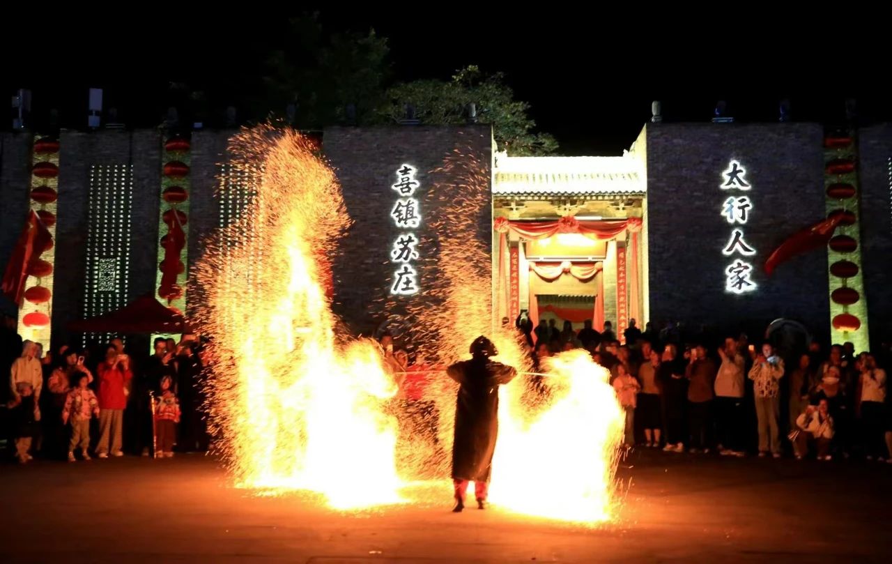 喜镇苏庄推出了“婚俗+”的节目形式,婚俗特色节目《喜镇迎宾礼》《抛绣球》《出阁礼》《中式传统婚礼巡游》依次上演,景区还增添了川剧变脸、非遗火壶激情电音节、篝火晚会等表演为游客带来非凡的视听体验。