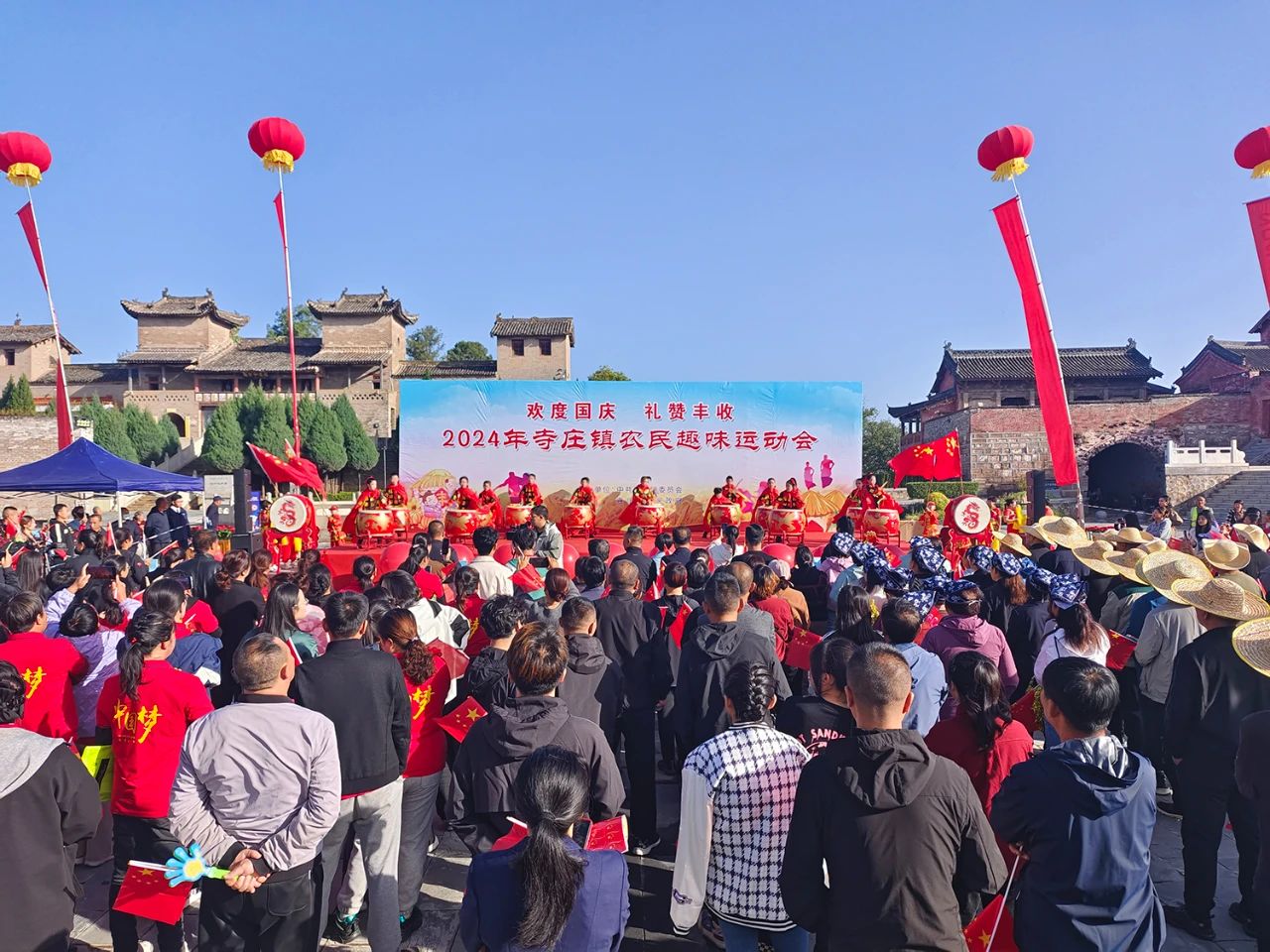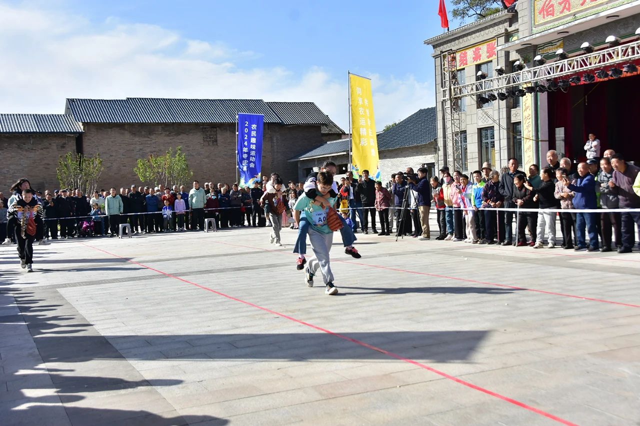在礼遇伯方,2024年寺庄镇农民趣味运动会火热举行,比赛项目有回娘家、挑梨庆丰收剥玉米等,奖品设置为鸡鸭、黄梨黄梨片、红薯等土特产品,村民们在比赛中共话丰收的喜悦。