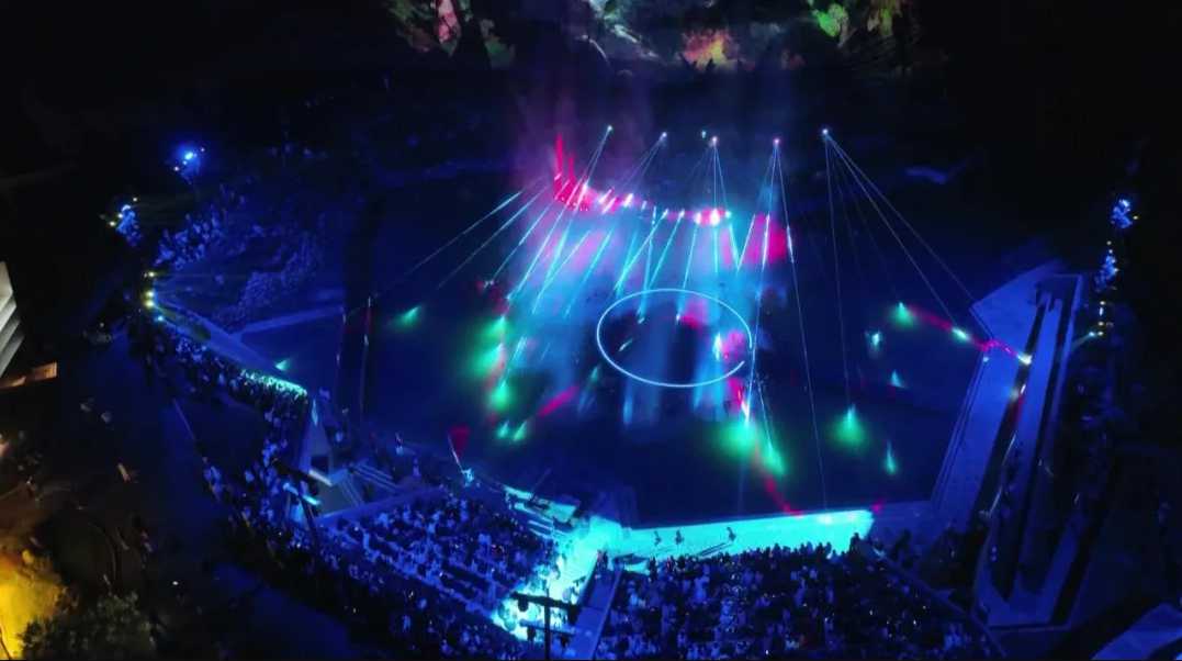 在人们的欢呼声中,夜空中拉开一场视觉盛宴。堪称——光与火的交响、山与水的交融、文与旅的交汇、河与人的交流。邀请专业团队精心编创,20分钟的灯光秀凝缩了千年历史。