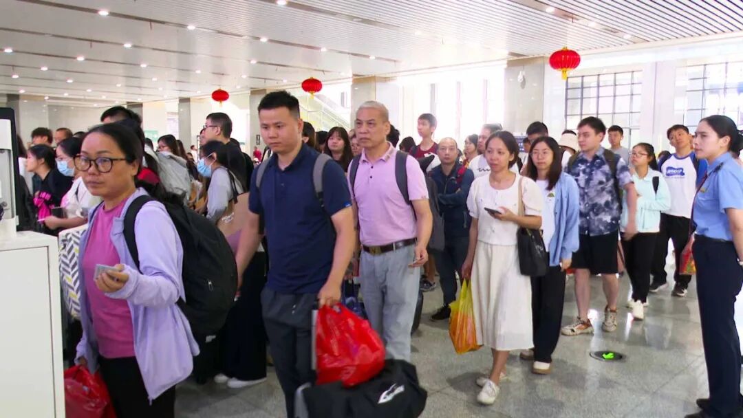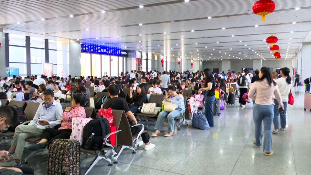 据了解,今天梅州西站预计发送旅客2.1万人次,到达旅客1.3万人次。为应对客流返程高峰,梅州西站工作人员、志愿者、公安交警值班值守,为旅客提供引导和帮助。