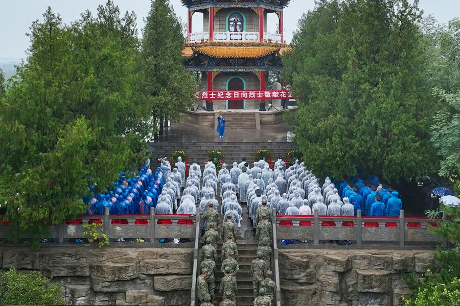 北高庙烈士公园内松柏苍翠,烈士纪念塔巍然矗立,现场庄严肃穆。上午9时,牛志强宣布敬献花篮仪式正式开始。全体人员整齐列队面向革命烈士纪念塔肃立,齐声高唱《中华人民共和国国歌》,激昂的旋律响彻陵园上空。国歌唱毕,全场低首肃立,向为革命解放事业英勇献身的烈士默哀。默哀毕,少先队员献唱《我们是共产主义接班人》。