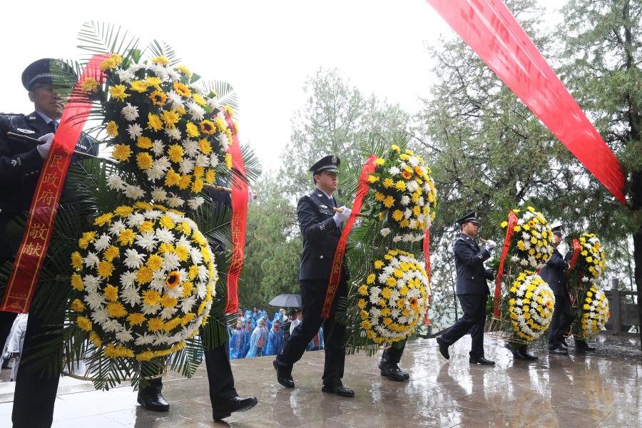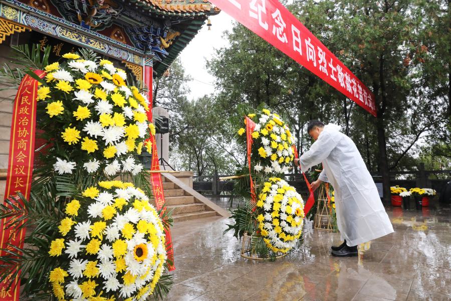 青山埋忠骨,山河念英雄。9月30日是我国第十一个烈士纪念日,我县在北高庙烈士陵园举行烈士纪念日向烈士敬献花篮仪式,缅怀革命先烈,祭奠先烈英魂,赓续红色血脉,凝聚奋进力量。县委书记郭强,县委副书记、县长牛志强,县委副书记、统战部长王慧忠,县人大常委会主任王宇红,县政协主席吴斌等县四套班子领导、其他处级领导出席,部分县直单位负责人、公安干警代表、学生代表等200余人参加仪式。
