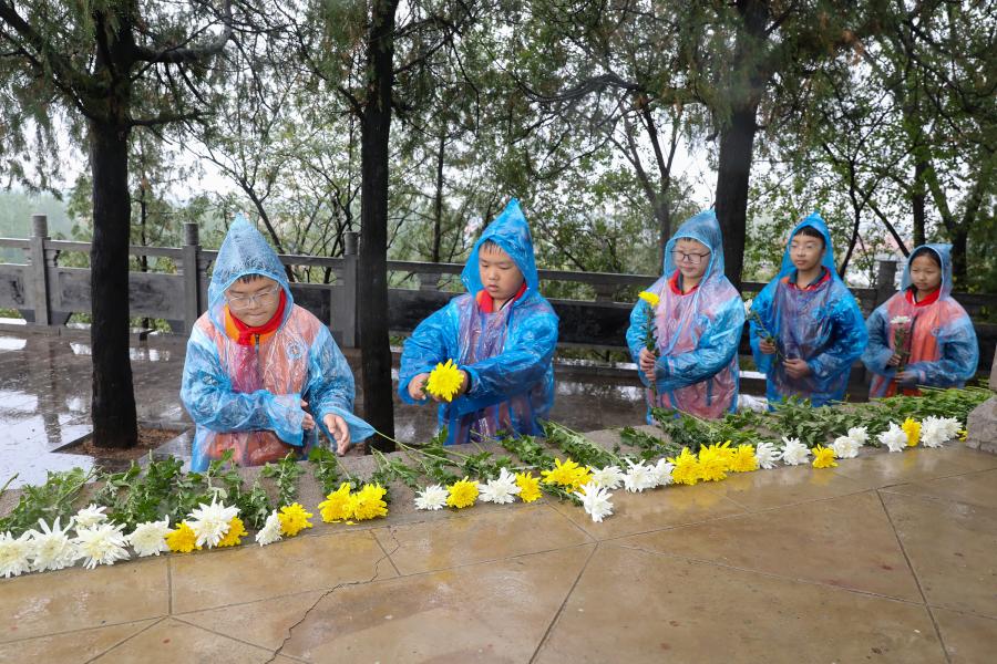 随后,县领导和参加仪式人员依次走向纪念塔,缓步绕行,瞻仰烈士纪念塔,献上手中的菊花,朵朵菊花寄托着对革命先烈的深切缅怀和崇高敬意。