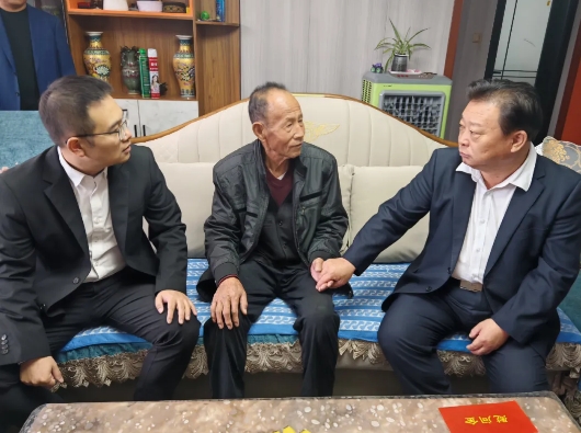 在退役军人朱金川、杨生保家中,杨文炯与老同志们促膝长谈,并献上鲜花和慰问金,关切询问生活上存在的困难和问题,嘱咐老人要保重身体,保持良好心态和积极向上的精神风貌。