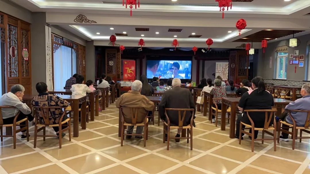 老茶坊内,大家或坐或站,满怀期待地等待着电影的开始。“电影上映时太忙没来得及看,今天正好约同学一起来补上,和大家一起看非常热闹!”居民朱同学说。