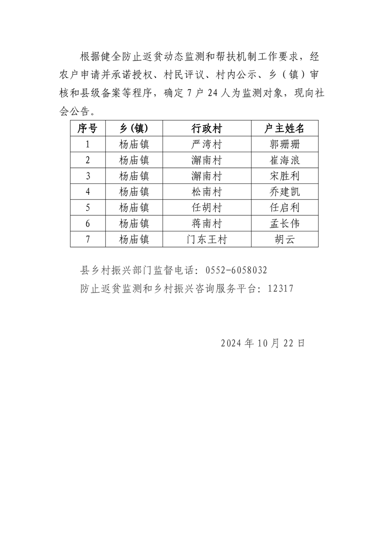 固镇县确定监测对象名单公告(第二十三批)