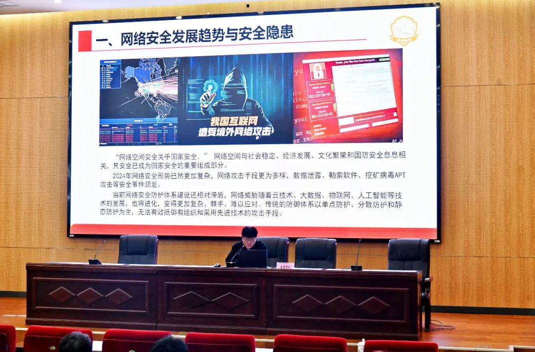 在网络安全培训阶段,江苏金盾检测技术股份有限公司和江苏天创科技有限公司的安全专家分别就《增强网络安全意识,筑牢网络安全防线》和《机关单位网络安全防护措施》进行专题授课。他们结合实际案例和实践经验,围绕网络安全新形势、网络安全法律法规、如何做好网络安全工作等方面展开。与会人员纷纷表示受益匪浅,不仅加深了对网络安全重要性的认识,还学到了许多实用的防范技巧和应对策略,将把学到的知识应用到实际工作中,不断提升网络安全防护能力,共同构建安全、稳定的网络环境。?