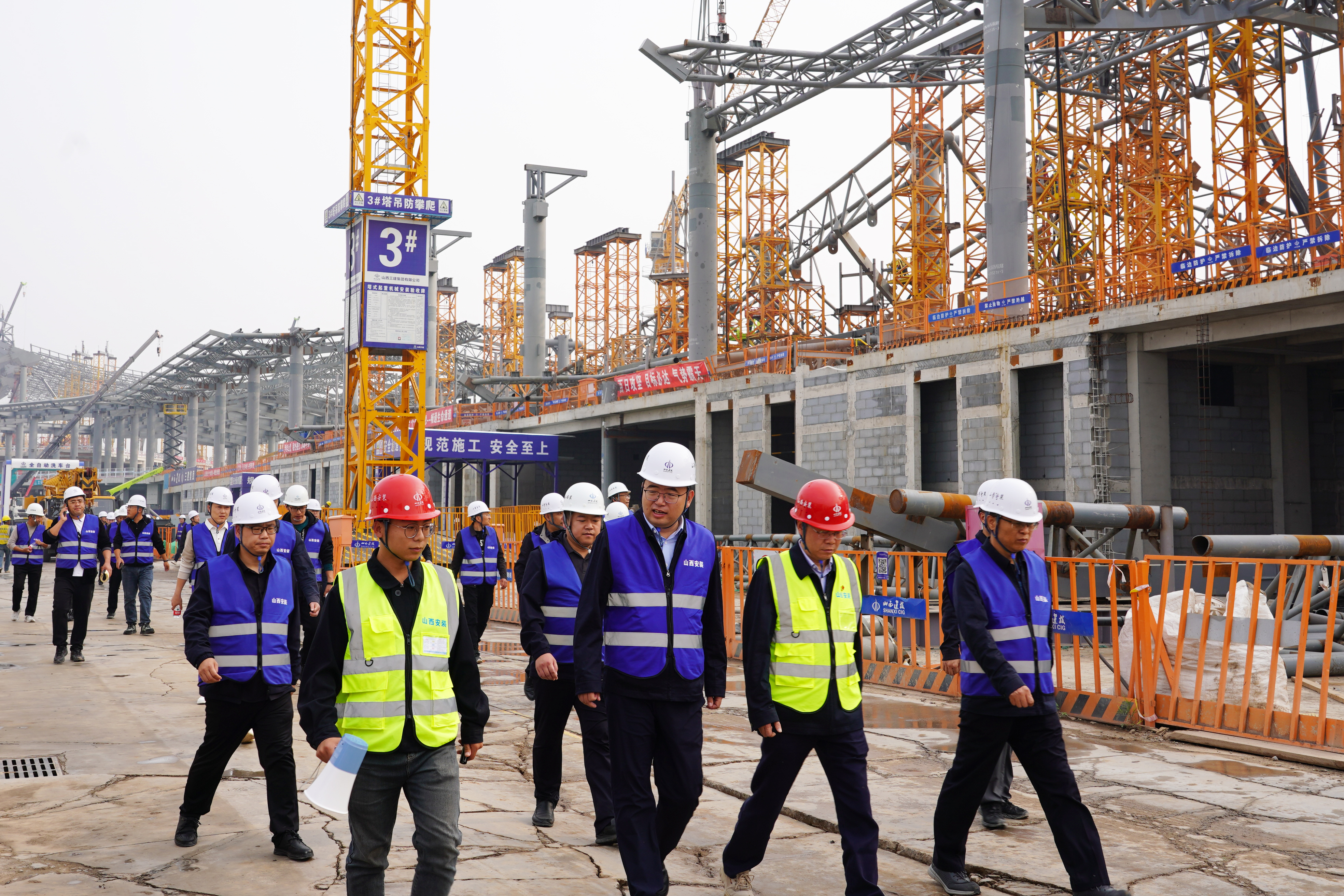 10月16日,山西二建集团安全管理部部长师永林带领集团60余名安全管理人员,到集团太原武宿国际机场三期改扩建工程机电安装项目部观摩交流,集团安全环保部部长嘉喜辉、第一工程公司副总经理陈江波、机场项目党支部书记、经理王永利等陪同。